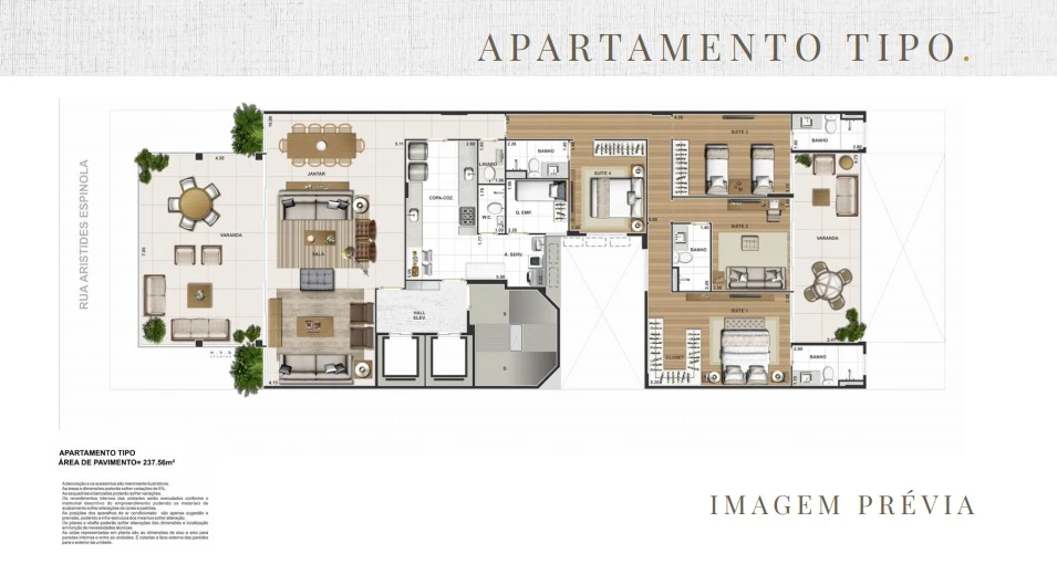 4 Suítes com 237m²